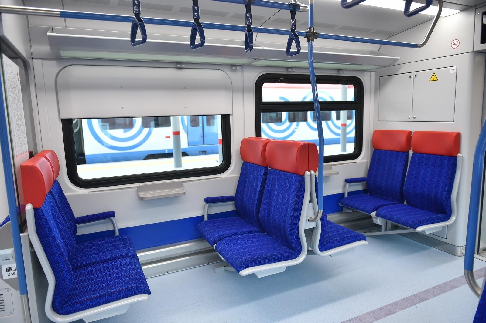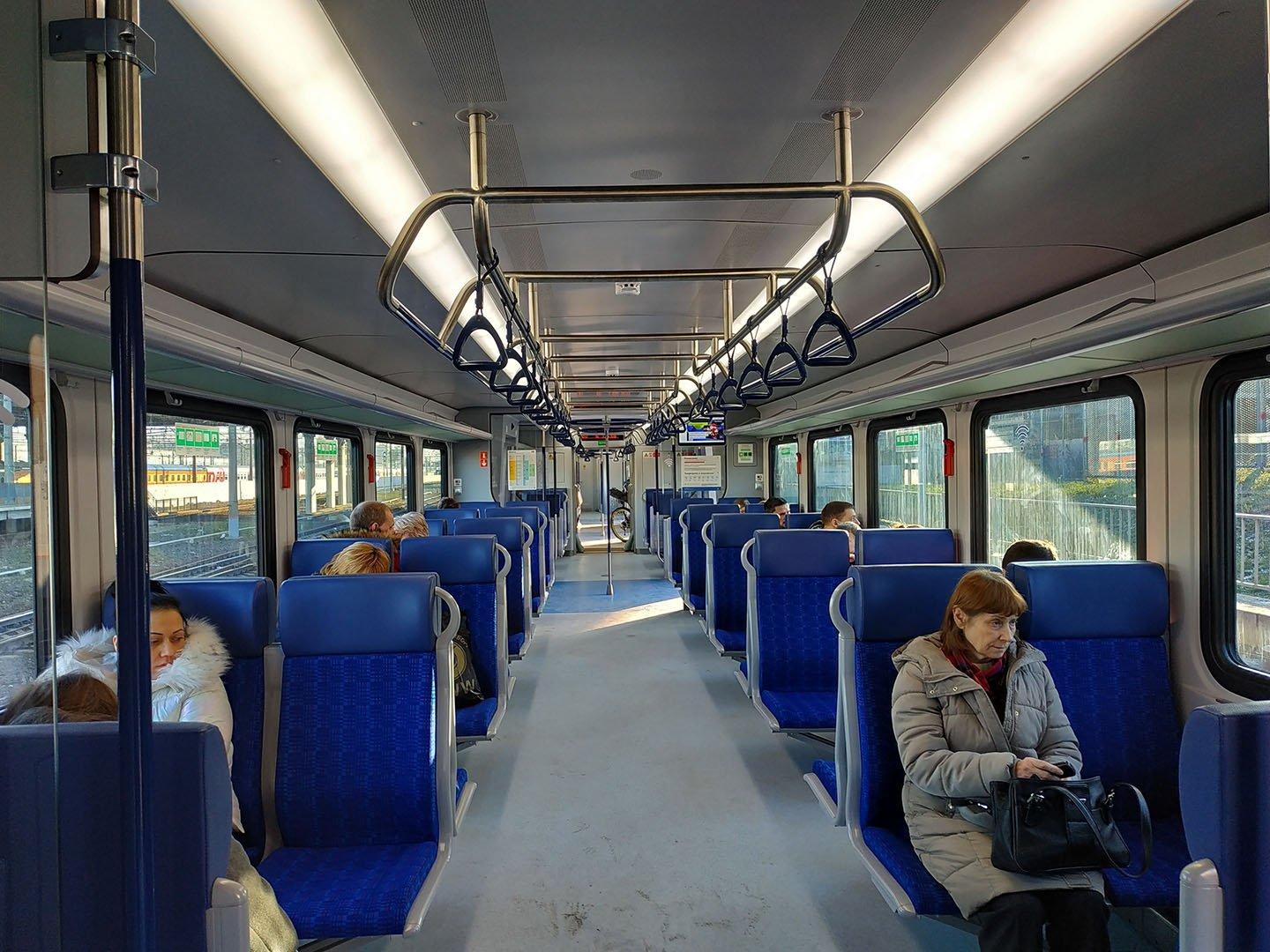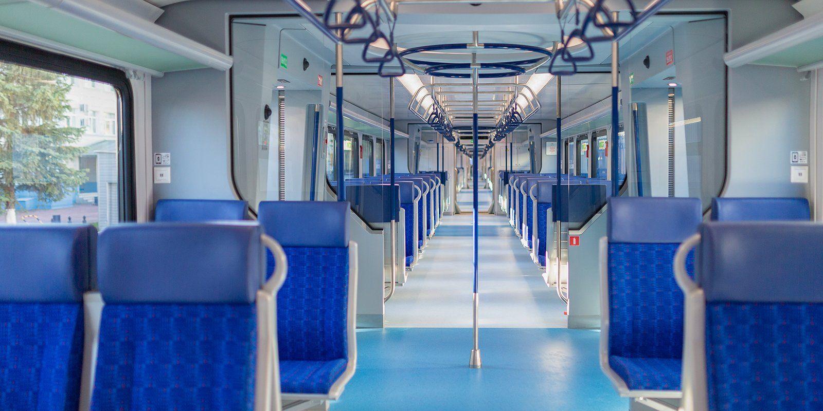 Вид внутри вагона эконом класса поезда ласточка