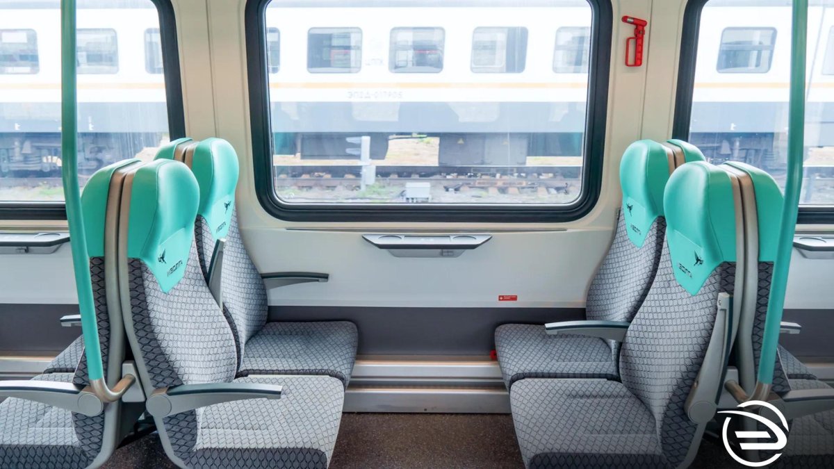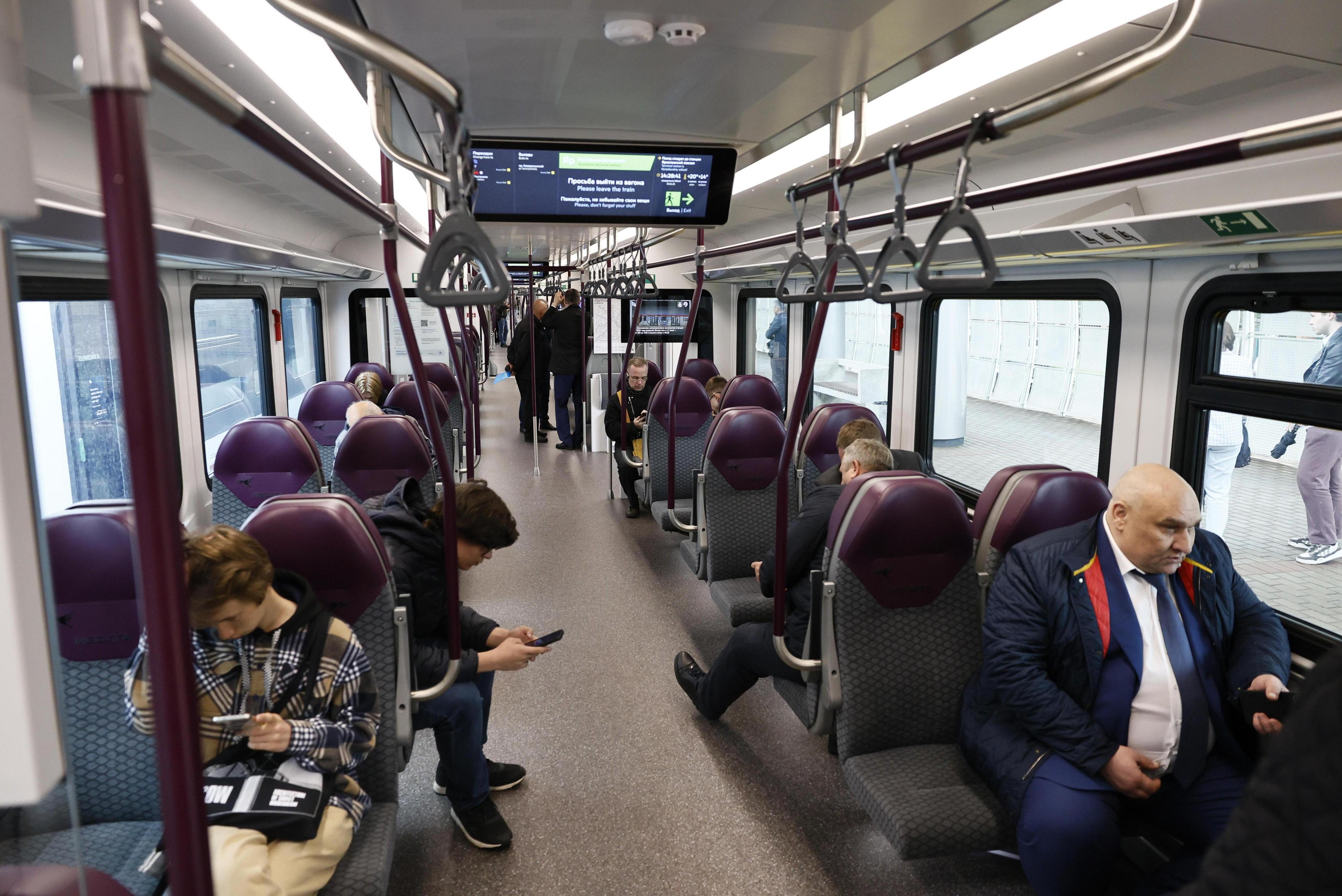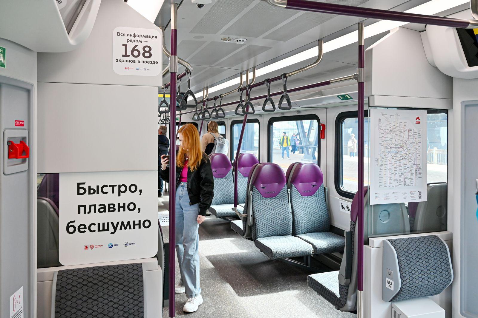 Вид внутри вагона эконом класса поезда ласточка