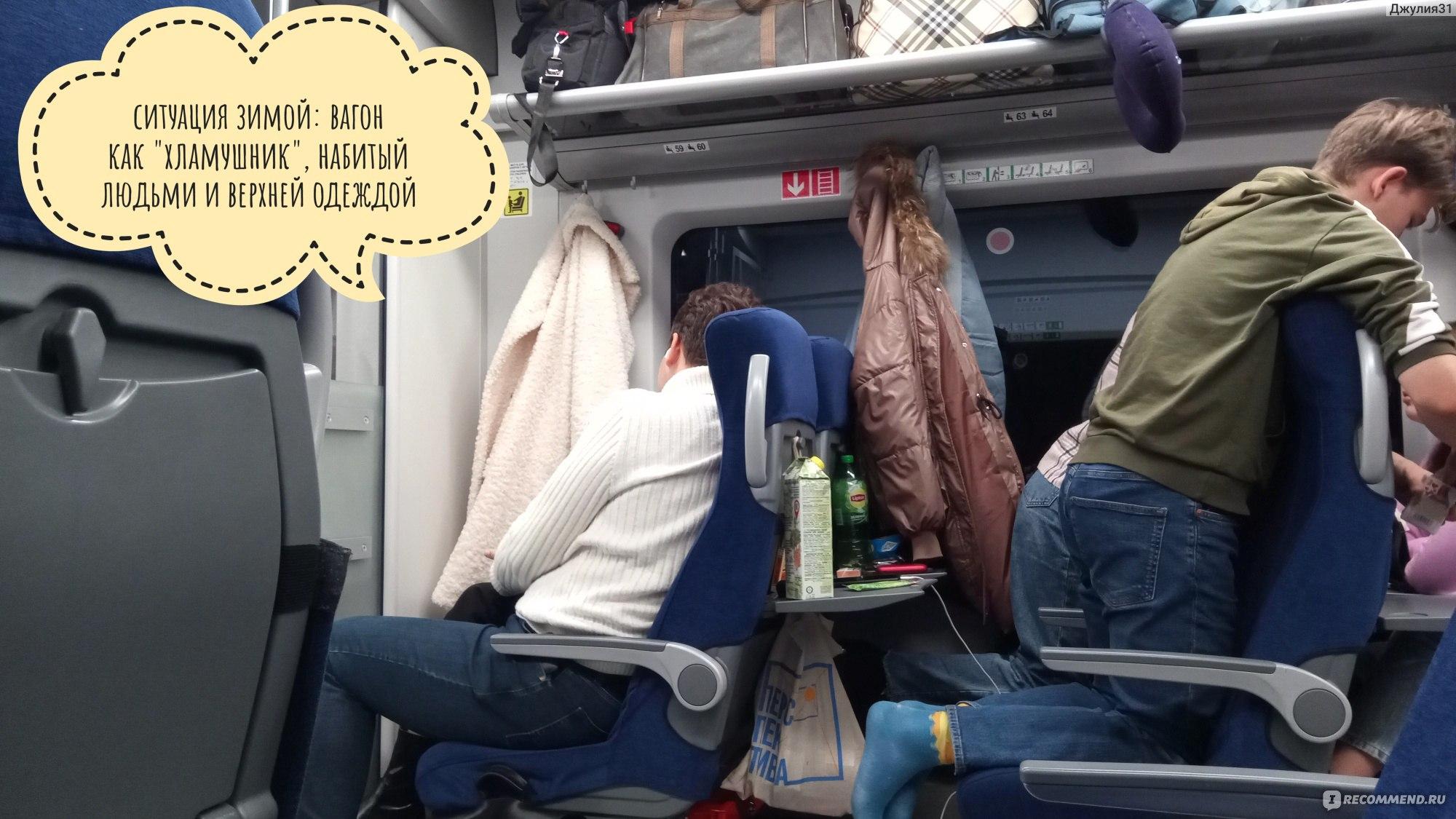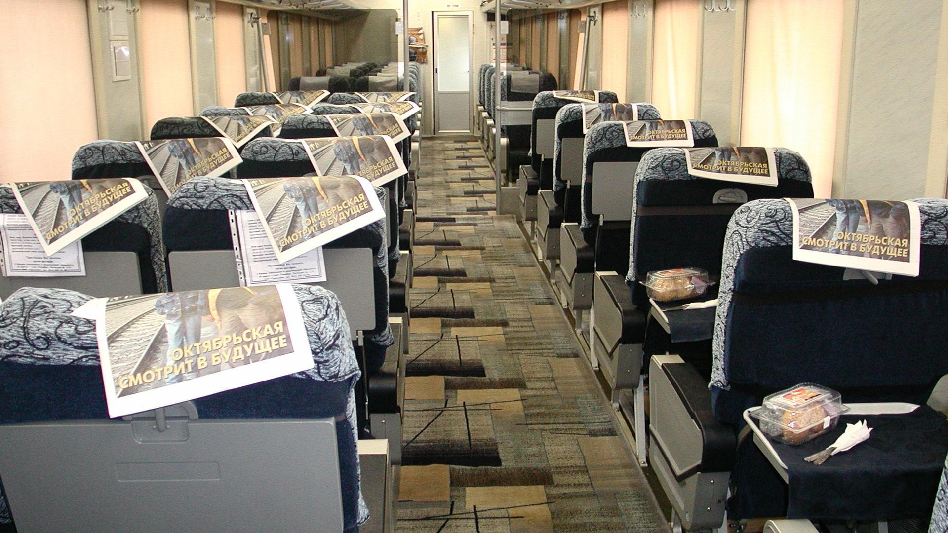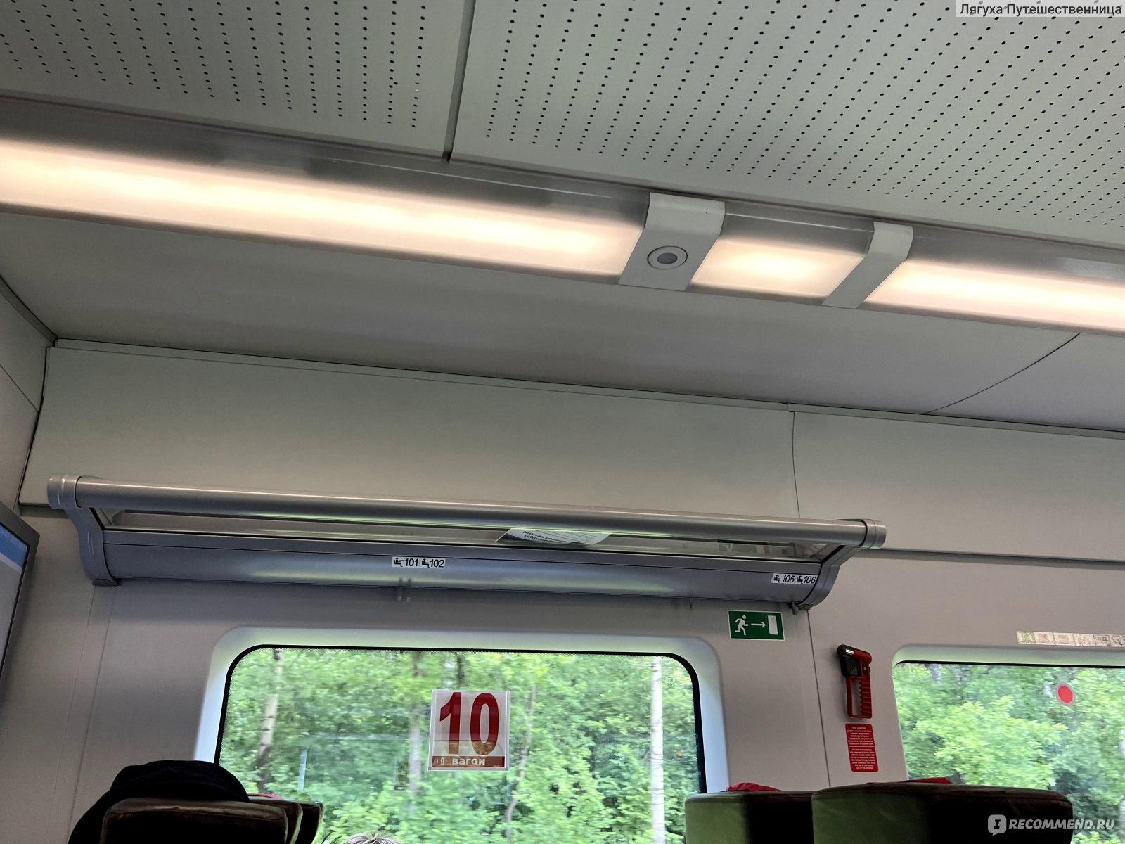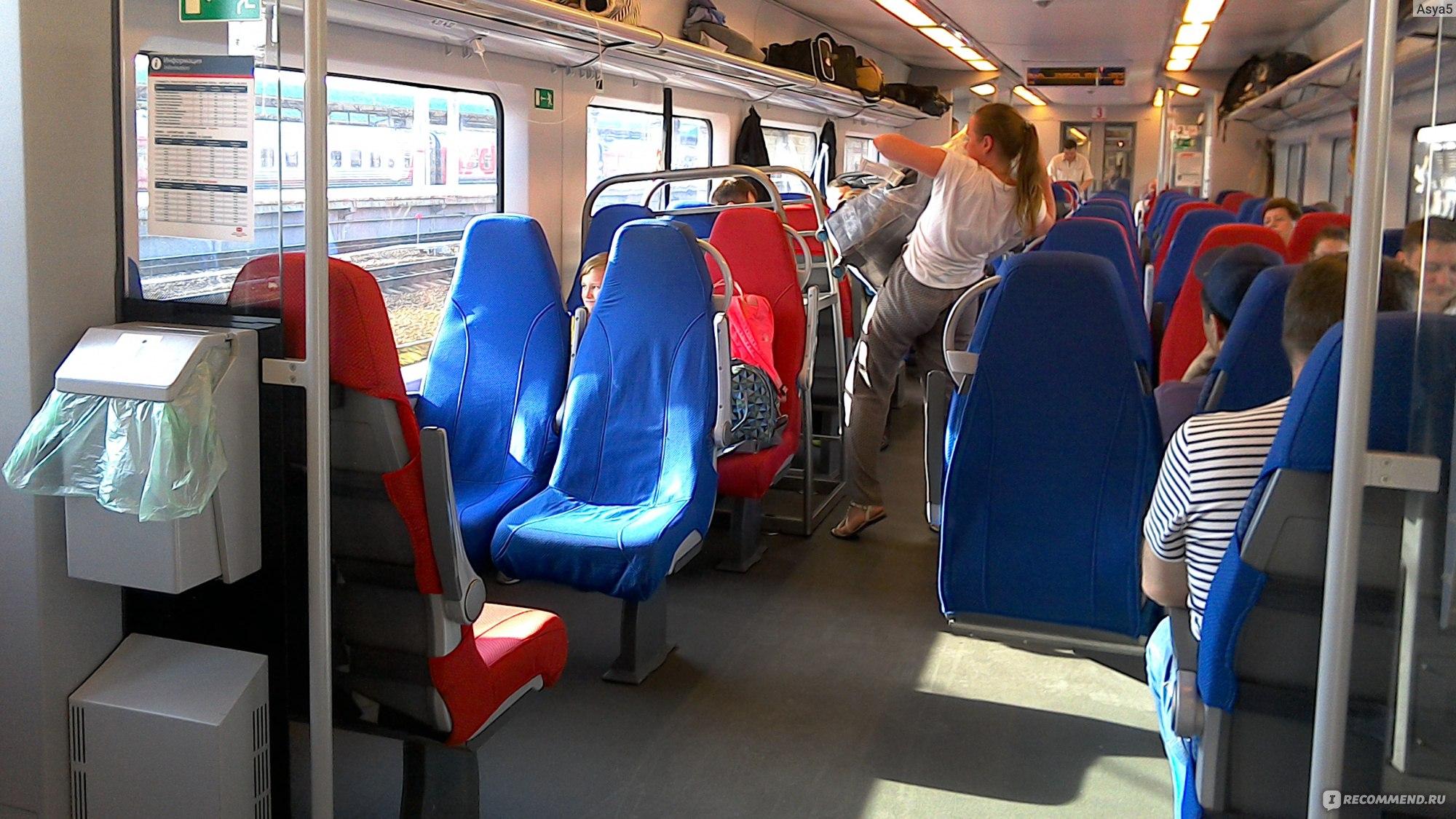 Вид внутри вагона эконом класса поезда ласточка