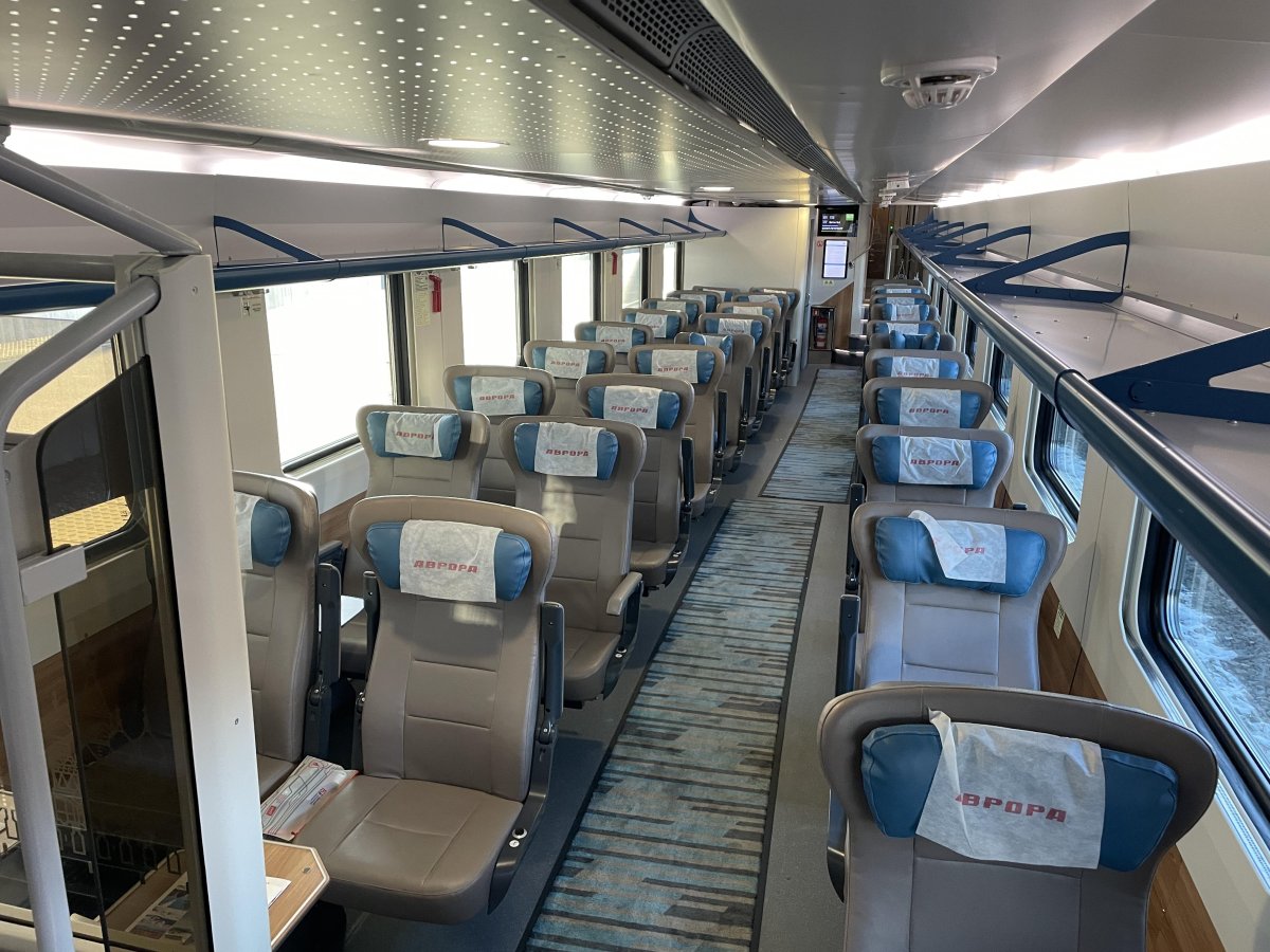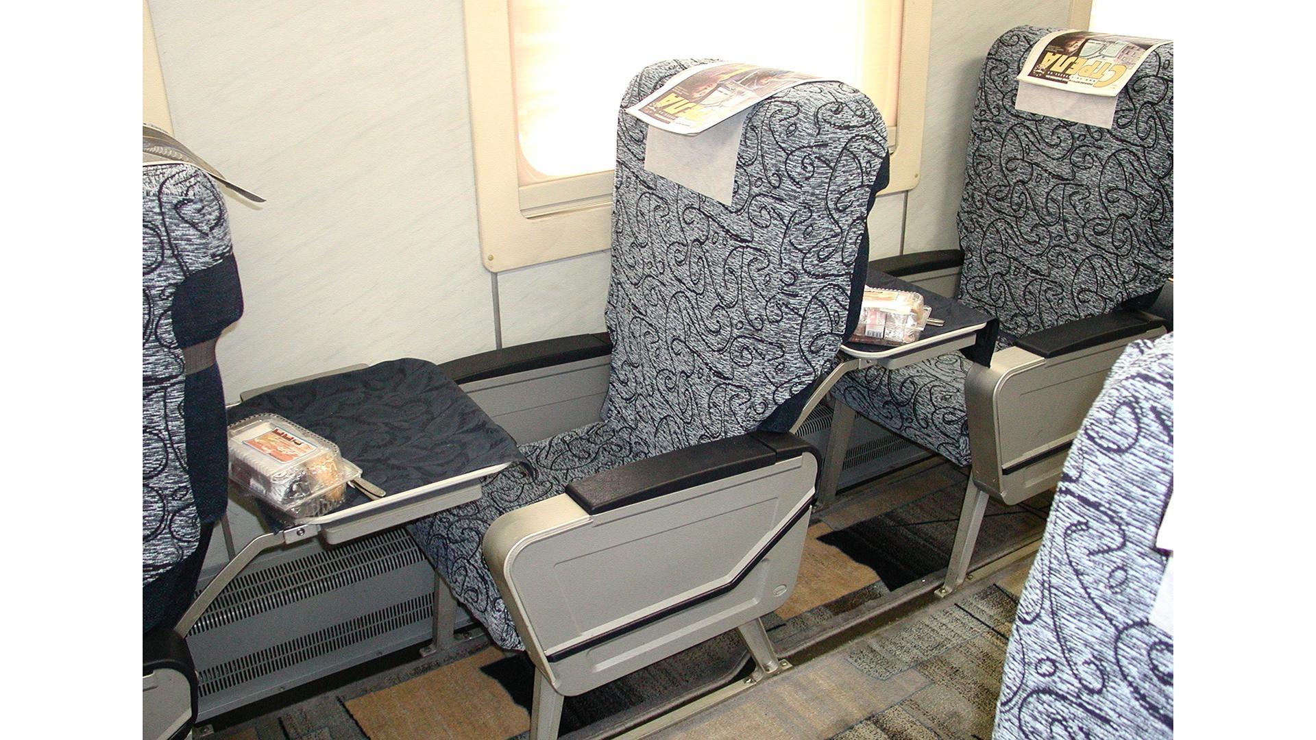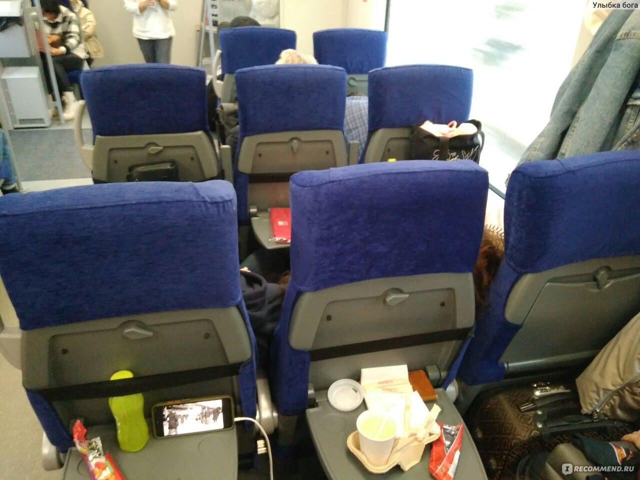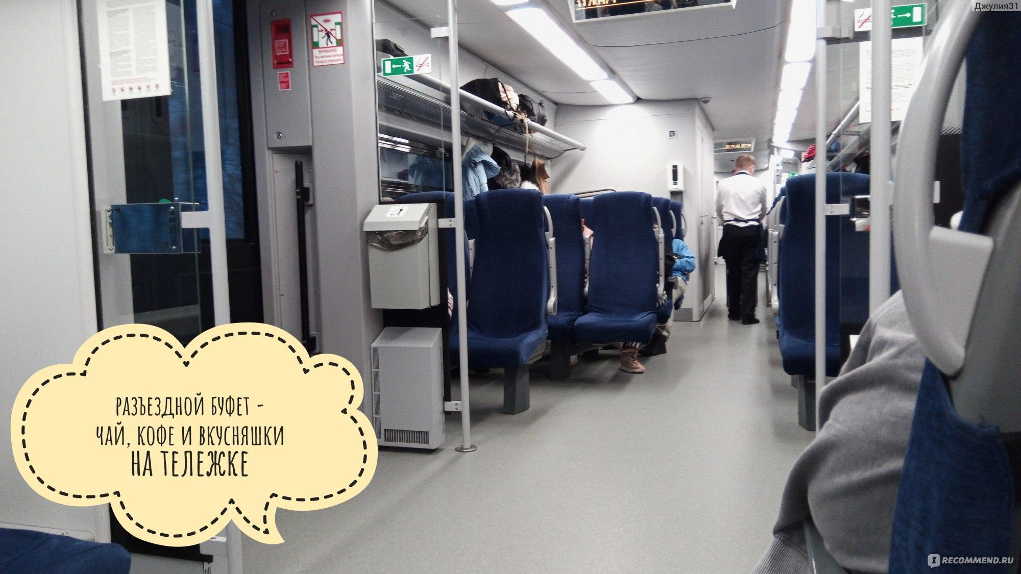 Вид внутри вагона эконом класса поезда ласточка