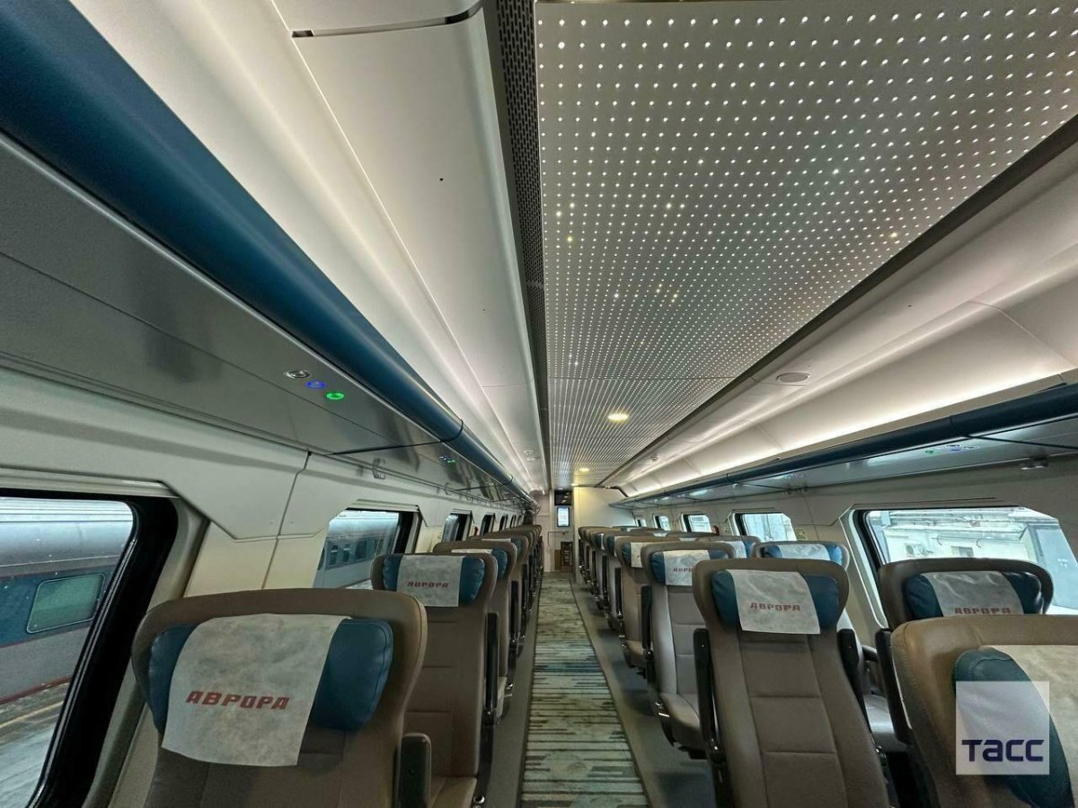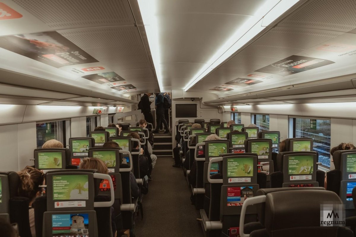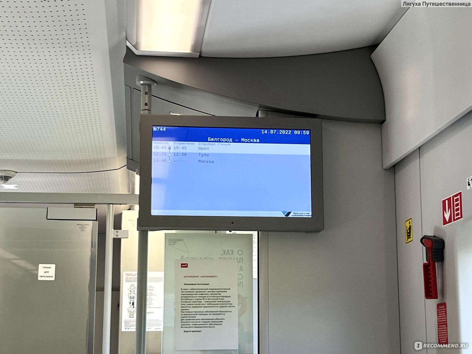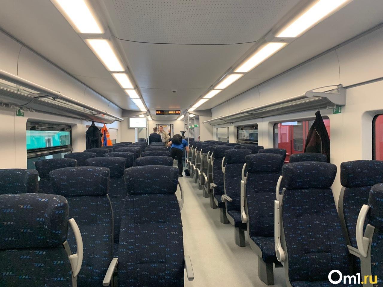 Вид внутри вагона эконом класса поезда ласточка
