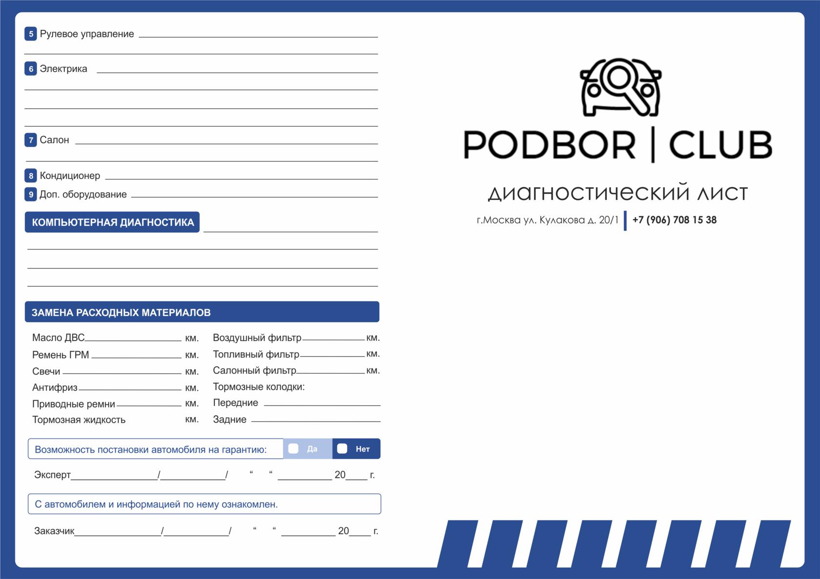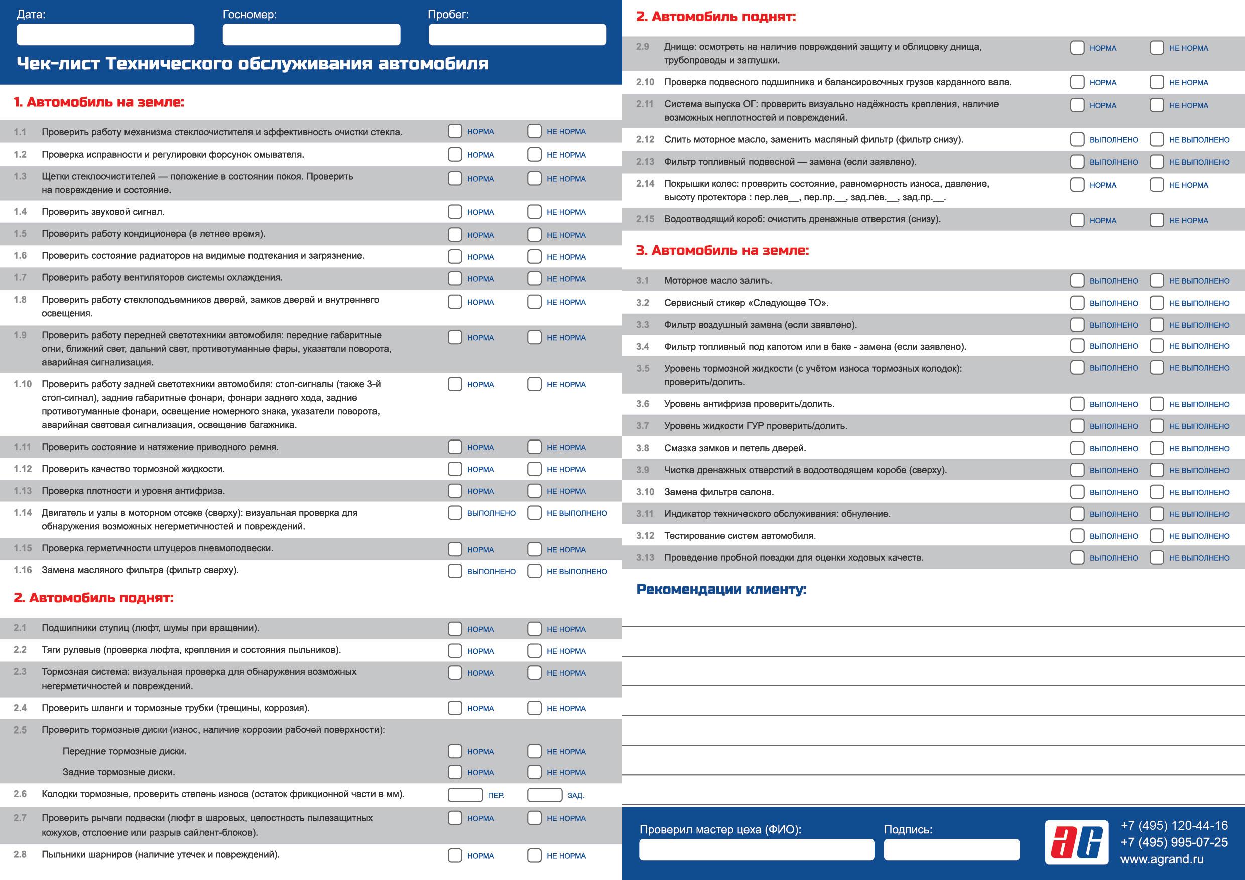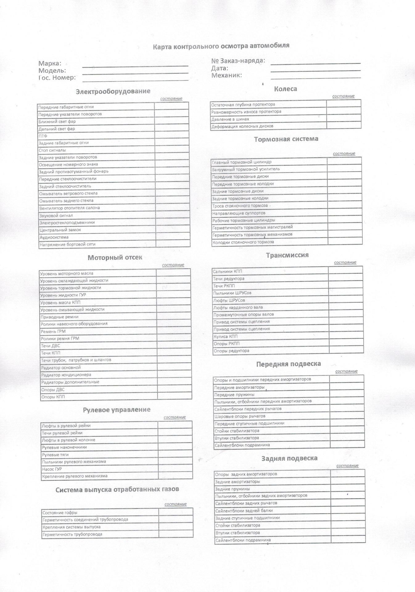 Чек лист проверки автомобиля 01 фев --- 0 0 0 1 2 3 4 5 Норма час в автосервисеЧек лист технического обслуживания автомобилейДиагностический лист осмотра автомобиляЧек лист осмотра авто перед покупкойЧек лист автомобиляЛист осмотра ходовой части автомобиляДиагностический лист осмотра грузового автомобиляЛист осмотра автомобиляБланки осмотра транспортного средстваФото: Лист диагностики автомобиляКарта диагностики ходовой части автомобиля образецДиагностический лист автомобиляДиагностика автомобиля по 40 параметрамДиагностическая карта ходовой части автомобиля образецТехнологическая карта предпродажной подготовки автомобиляЧек лист проверки станкаФото: Лист осмотра ходовой части автомобиляДиагностическая карта ходовой части автомобиля образецЧек лист детейлинг мойкиРегламент по то на BMW 116 2013Диагностический лист осмотра автомобиляСхема приемки автомобиляЧек лист по осмотру автомобиляКарта осмотра ходовой части автомобиляЧек лист для проверки подержанного автоДиагностический лист осмотра автомобиляЧек лист осмотра авто перед покупкойДиагностическая карта автомобиля ГАЗ - 3307Чек лист вещей в машинуДиагностический лист осмотра автомобиляДиагностическая карта фит сервисДиагностический лист автомобиляФото: Карта диагностики ходовой части автомобиля образецДиагностическая карта ходовой части автомобиля образецЛист осмотра ЛКП автомобиляДиагностическая карта автомобиля ВАЗ 2106Чек лист осмотра крана мостовогоЧек лист приемки автомобиляЛист технического обслуживания автомобиляТехосмотр бланк диагностической карты образецКарта оперативной проверки лифтаПриложение русский стандарт банкДиагностическая карта автомобиля ГАЗ - 3307 Похожие фото: Поезд на станции звенигородская Морская навигация карта Пассажирский ту 116 Дорожный знак кроме вида транспортного средства Полировка машины Бмв икс5 красный салон Бмв зет4 2002 Бмв ай8 салон Бмв м3 е36 купе Бмв м8 цвет салона Комментарии Минимальная длина комментария - 50 знаков. комментарии модерируются Добавить Введите код с картинки: Отправить