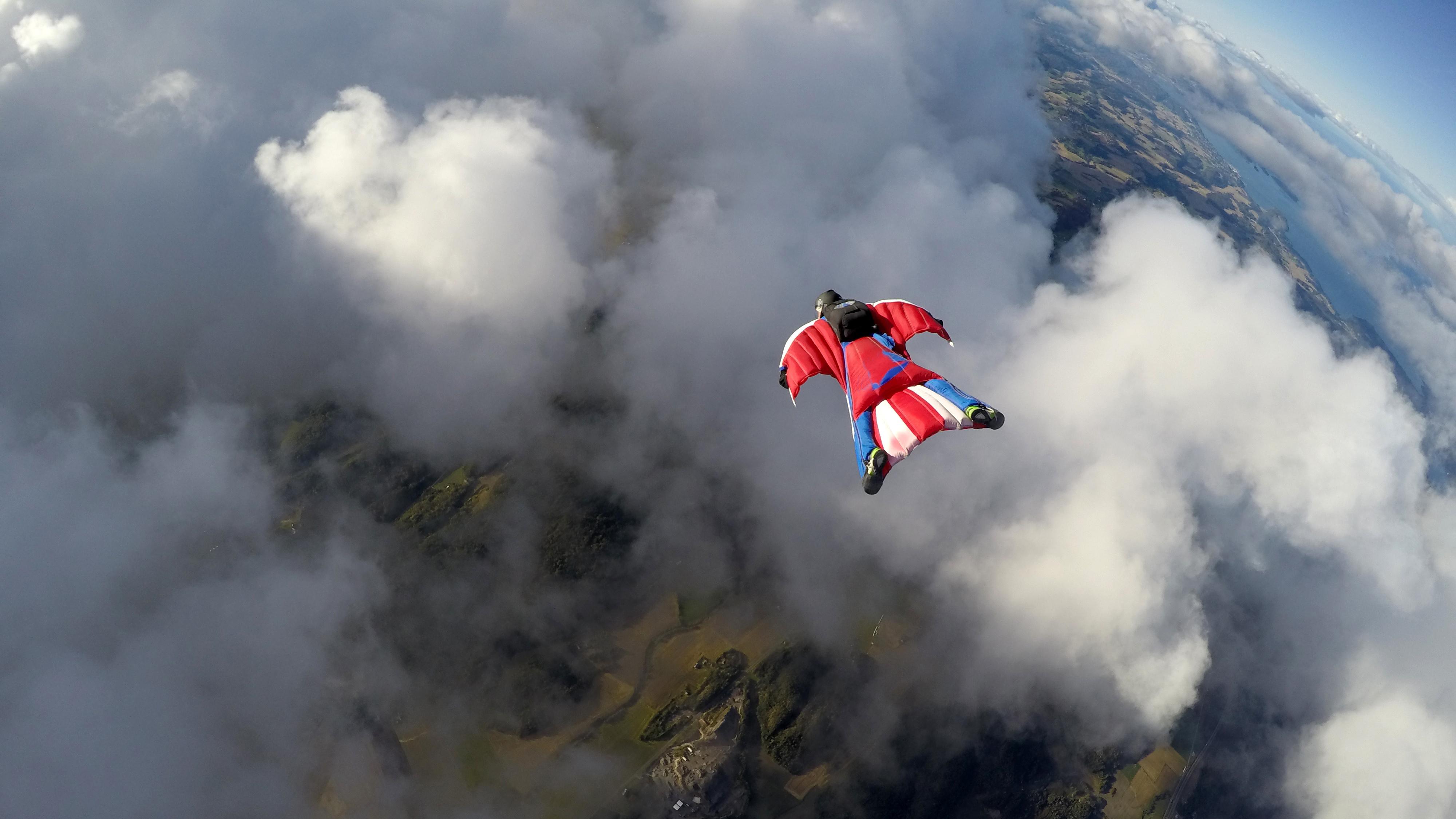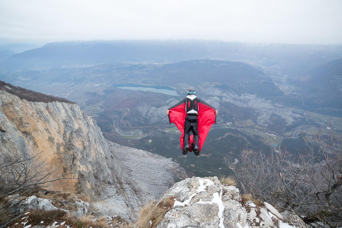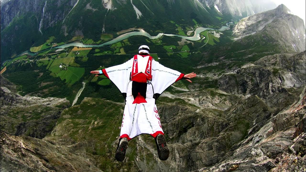 Полет над горами в костюме