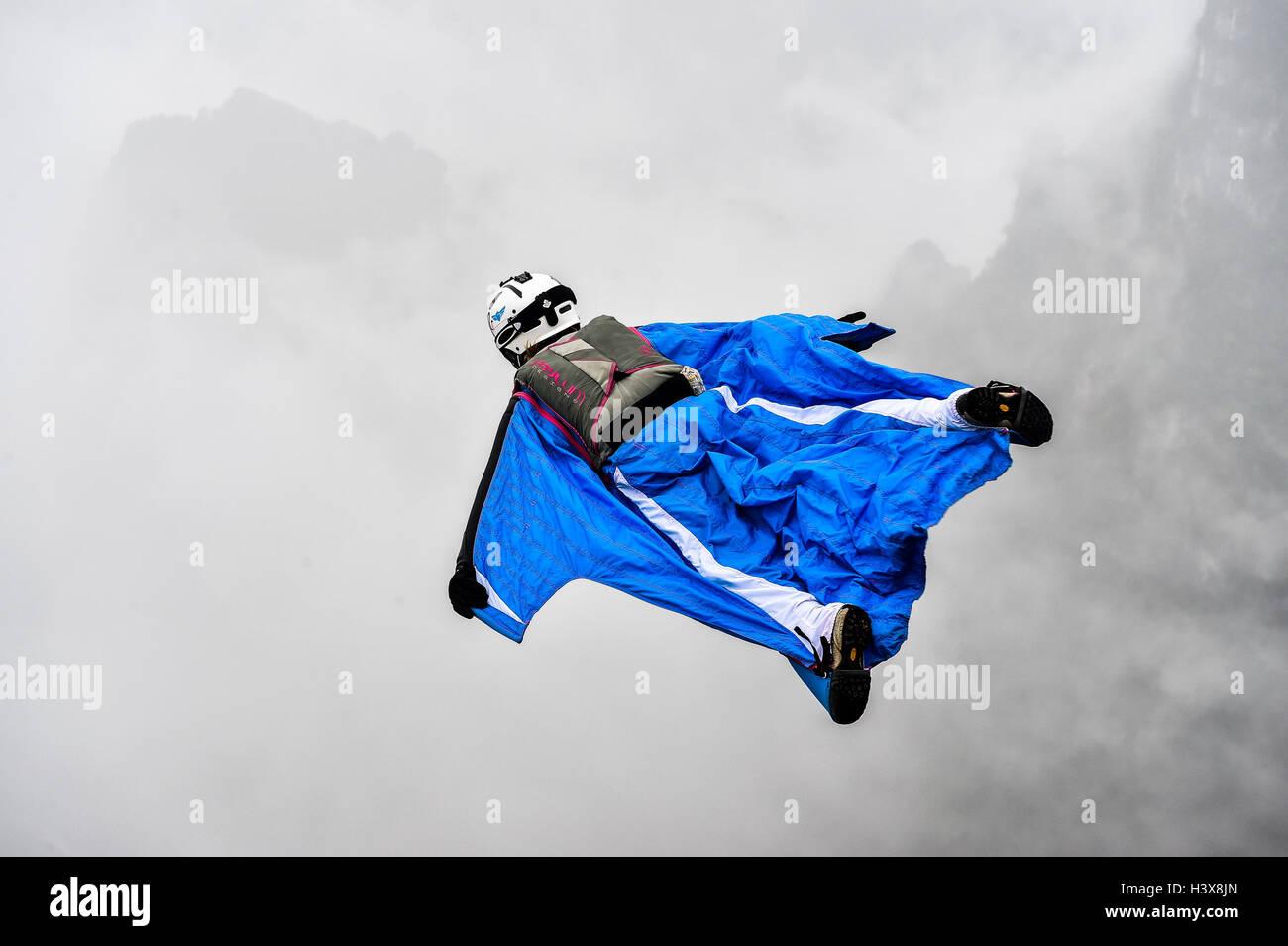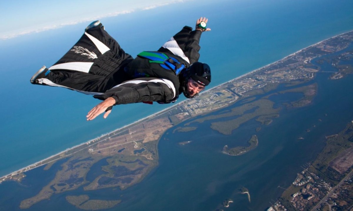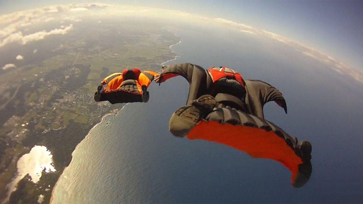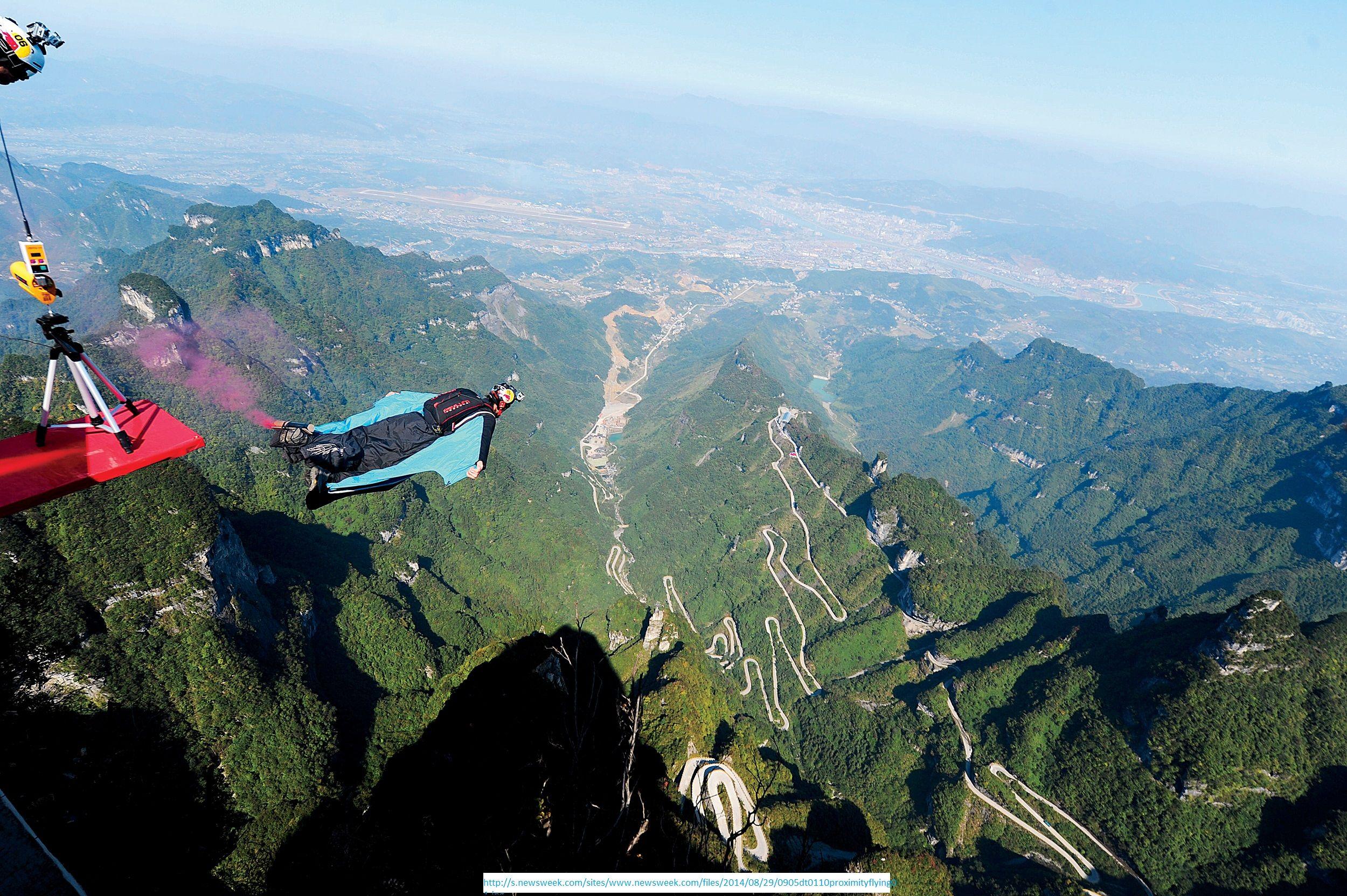 Полет над горами в костюме
