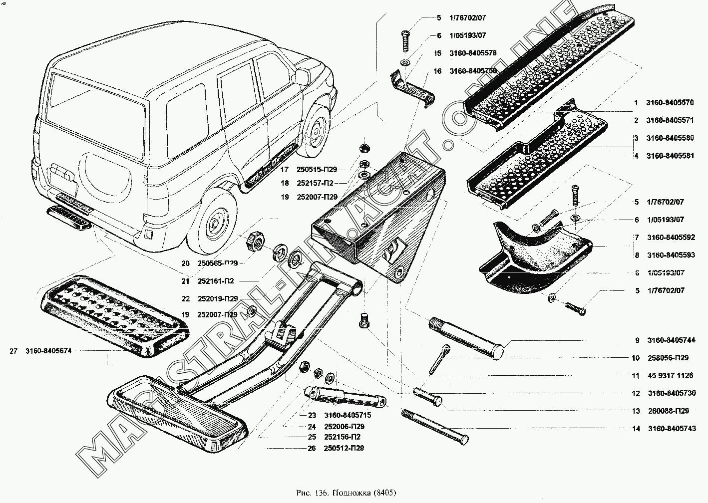 Подножка задняя уаз буханка