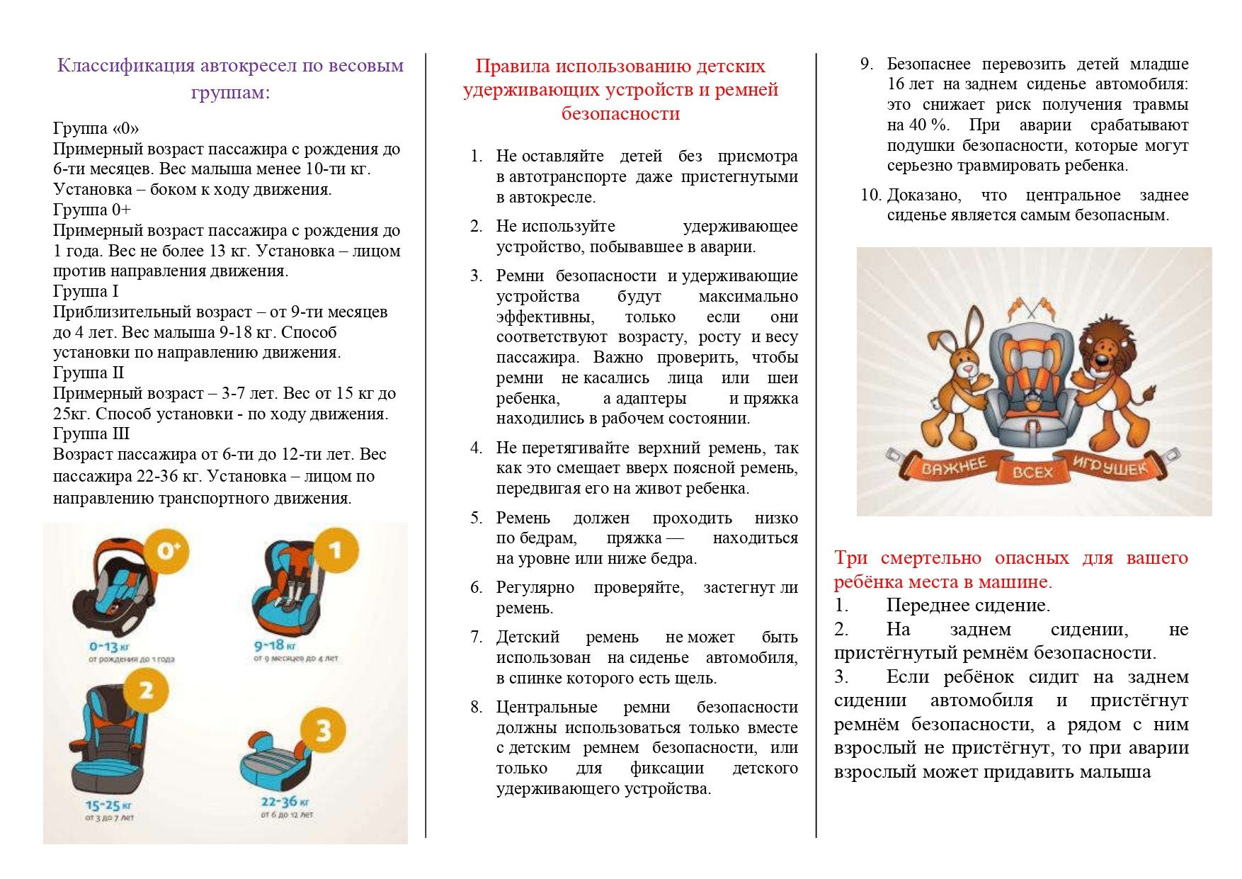 Правила перевозки детей в автокресле 04 мар --- 0 0 0 1 2 3 4 5 Памятка для родителей по ПДД В детском саду автокреслоПамятка автокресло детямБезопасность детей в автомобилеДетские удерживающие устройства памятка для родителейПамятка для родителей о перевозке детей на транспортном средствеЛистовка ребенок в машинеБрошюрки для родителей по ПДД В детском саду автокреслоПамятка по использованию детских удерживающих устройствДетские удерживающие устройстваИспользование ремней безопасности и детских удерживающих устройствРебенок главный пассажир памятка для родителейДетские удерживающие устройства для автомобиля по возрастуДетское кресло безопасностиФото: Автокресло для детейБезопасное место для автокреслаДетское удерживающее устройствоПДД детские креслаИнформация по детским удерживающим устройствамПамятка автокресло для малышаБуклет детское автомобильное креслоБуклеты для родителей по ПДД В детском саду автокреслоПристегни ремни безопасности для детейАвтокресло рисунокПравила перевозки детей в автомобиле в 2023Памятки для родителей по ПДД кресло для детейБуклет автокреслоПамятка пристегните ребенкаТребования к перевозке детейАкция детское креслоПДД правила перевозки детей в автомобиле 2022Классификация детских удерживающих устройствИнфографика автомобили Похожие фото: Автокресло актрум Автокресло по возрасту Принцип действия ремня безопасности Пдд Автокресло лико беби 0 36 Автокресло хэппи беби уникс Пристегнись Безопасность в транспорте Управление велосипедом Подушка безопасности в автомобиле Комментарии Минимальная длина комментария - 50 знаков. комментарии модерируются Добавить Введите код с картинки: Отправить
