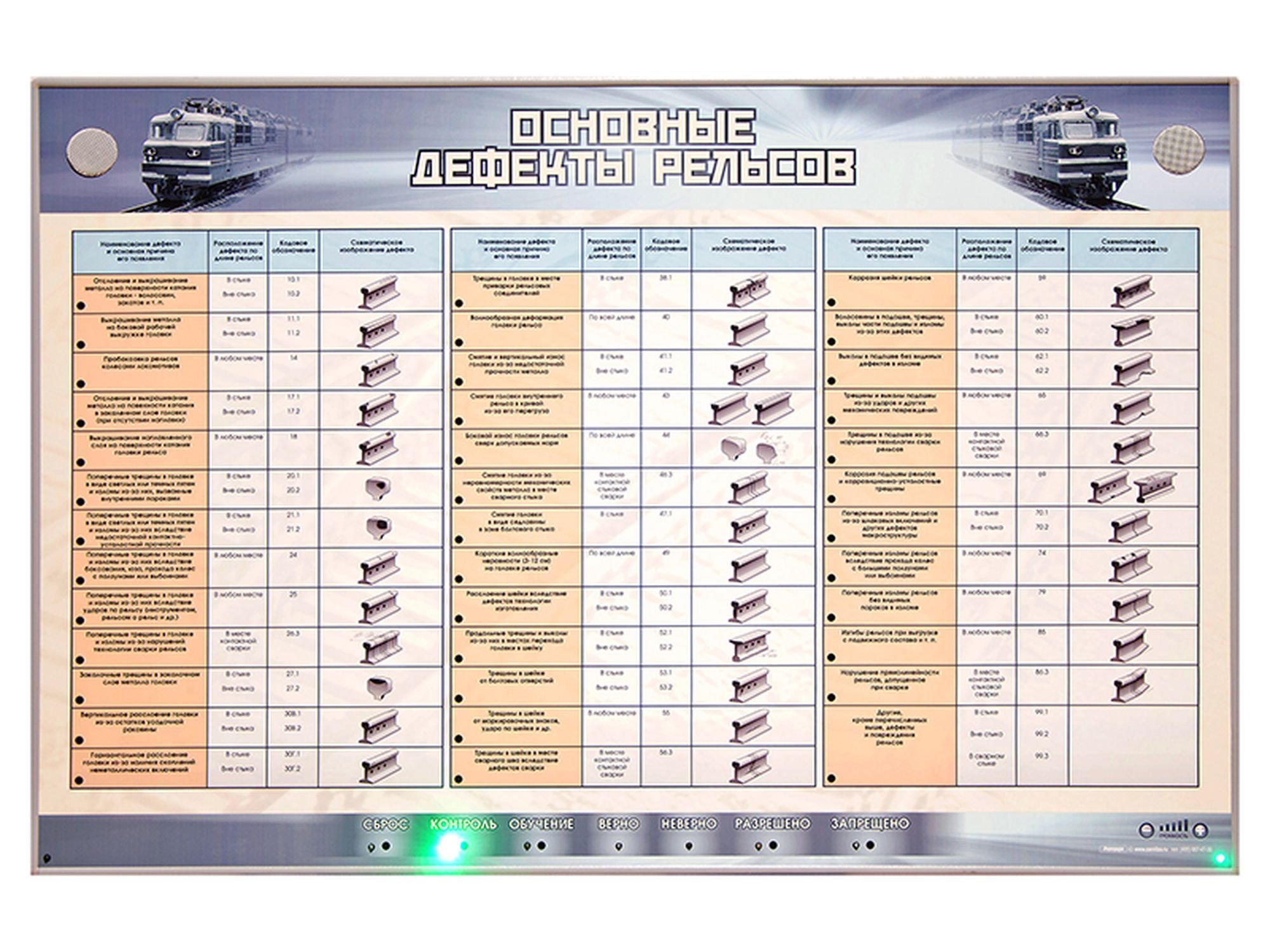 Подвижной состав железных дорог для ликвидации поверхностных дефектов 08 апр --- 0 0 0 1 2 3 4 5 Дефектоскоп РДМ 22Щом-1400 щебнеочистительный комплексОбточка бандажей колесных парДефектоскоп Авикон 14Ультразвуковой дефектоскоп удс2-РДМ-23Сканирование вагоновОсмотрщик ремонтник вагонов РЖДФото: Обеспечение безопасности движения на Железнодорожном транспортеКоды дефектов рельсовСистемы диагностики подвижного составаОсмотрщик ремонтник вагоновТочечные вагонные замедлителиСтенд вибродиагностики колесных пар ОМСД 03Классификация дефектов и повреждений элементов стрелочных переводовЭксплуатация подвижного состава железных дорогНТД дефекты рельсов 2499рБашмак тормозной горочный НРПС.318546.366.009Таблица кодов дефектов рельсовНеисправность стрелочного перевода при которой запрещаетсяРемонтное вагонное депо грузовых вагоновСлесарь в депо РЖДИзлом рельсаВагонное депо грузовых вагоновВагонное депо Лоста ВологдаМоторная платформа МПДДефекты деревянных шпалВосстановительный поезд РЖД Омск53.1 Дефект рельсаДефектоскоп 002 ТВЕМА вагонСпециальный самоходный подвижной составУправление тормозами грузового поездаИзлом боковой рамы тележкиМоечная машина колесных пар ВРК 1Вагоны РЖД грузовые цистерныУкладка рельсошпальной решетки железнодорожного путиКушва вагонное Ремонтное депоПутеукладчик тракторный ПБ- 3мВыправочно-подбивочно-отделочная машина ВПО-3000ССФЖТМолоток осмотрщика вагоновЗачистка вагоновТр-2 грузовых вагонов Похожие фото: Габарит подвижного состава Иж вега Принцип действия ремня безопасности Вагонные весы рд дт 50 Подушка безопасности в автомобиле График движения поездов Безопасность в транспорте Вагонные весы рд 150 7 модель 1007 Перестановка вагонов Поезд в депо Комментарии Минимальная длина комментария - 50 знаков. комментарии модерируются Добавить Введите код с картинки: Отправить